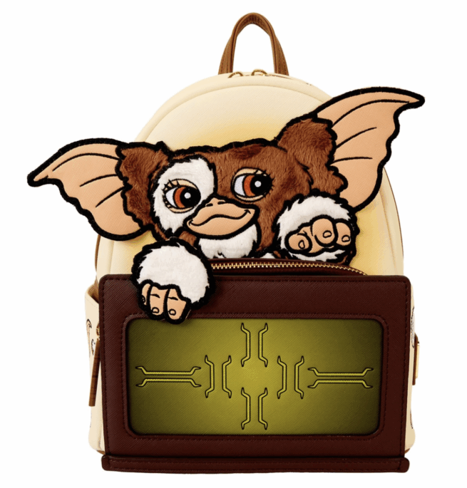 Break all the rules with a fashionably fun flair. Our cute and clever Gizmo mini backpack is ready for some fun. On the front, Gizmo emerges from his box. Faux fur, applique, and embroidered features bring this cuddly Mogwai to life. The box also serves as a front-zipped compartment for securing smaller items on your travels. A silicone zipper charm that says “Gremlins” tops off the look. Flip the backpack around, and you’ll find three printed symbols that can be interpreted as three rules: no bright lights, no water, and no food after midnight. Celebrate the 40th anniversary of Gremlins and pack just what you need for a mischievously merry adventure.