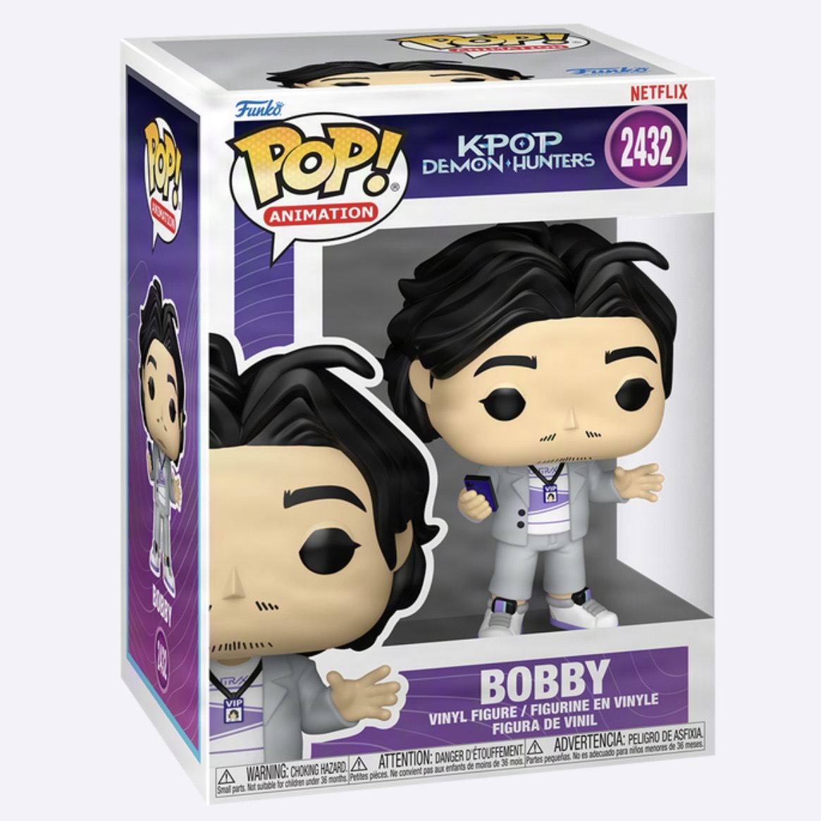 Cheer your heart out with POP! Bobby! This manager is here to support HUNTR/X in your Netflix KPop Demon Hunterslineup, so reunite him with Rumi, Mira, and Zoey in your POP! Animation collection for an unforgettable performance! Vinyl figure is approximately 4.2 in (10.7 cm) tall.