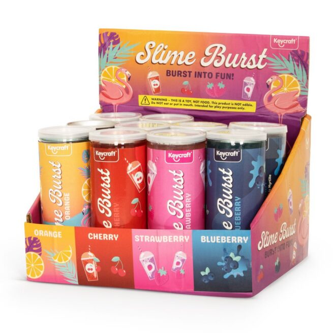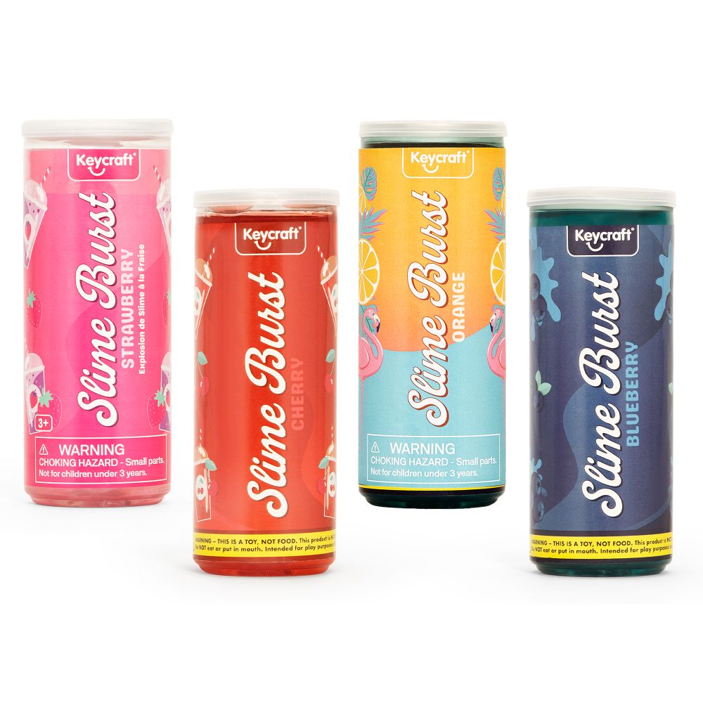 The Slime Burst cans put a playful spin on sensory fun, with sensory slime packaged in novelty cans designed to look just like classic soda drinks. Each can features a bold, eye-catching design, with different flavors to collect for added appeal. Stretchy, squishy, and bursting with fun, Slime Burst cans are perfect for hands-on play!